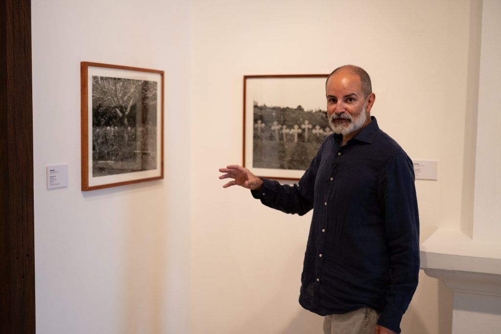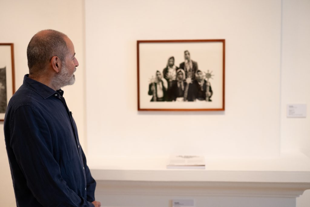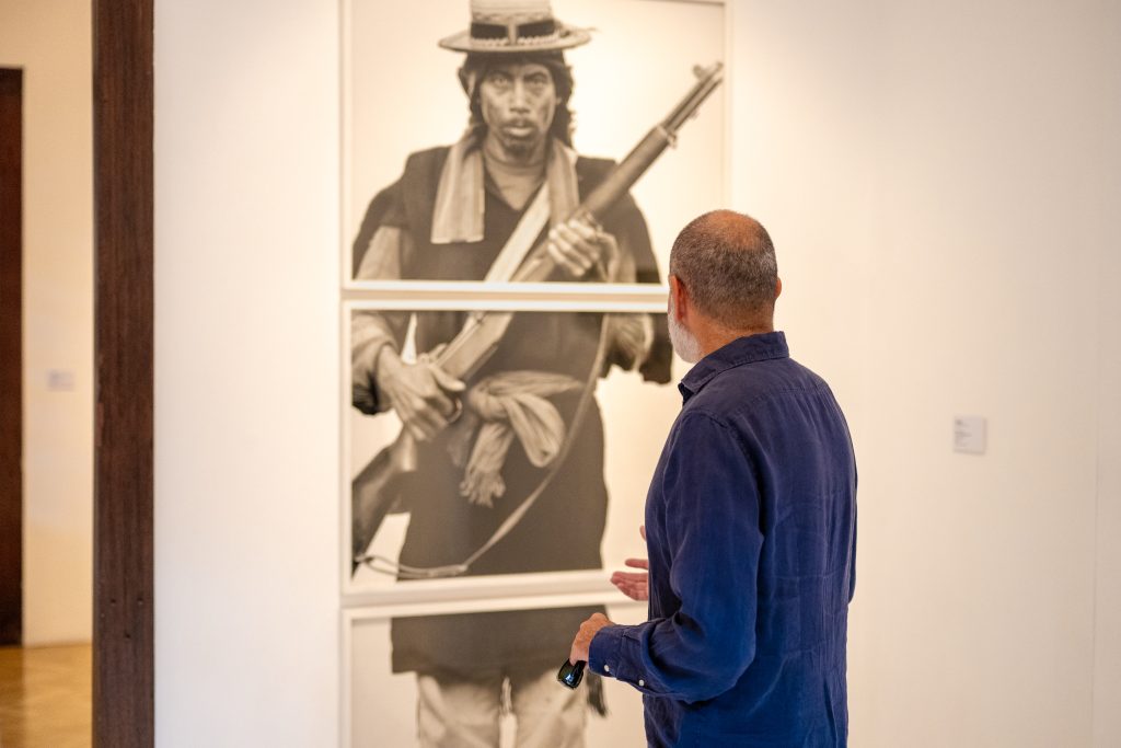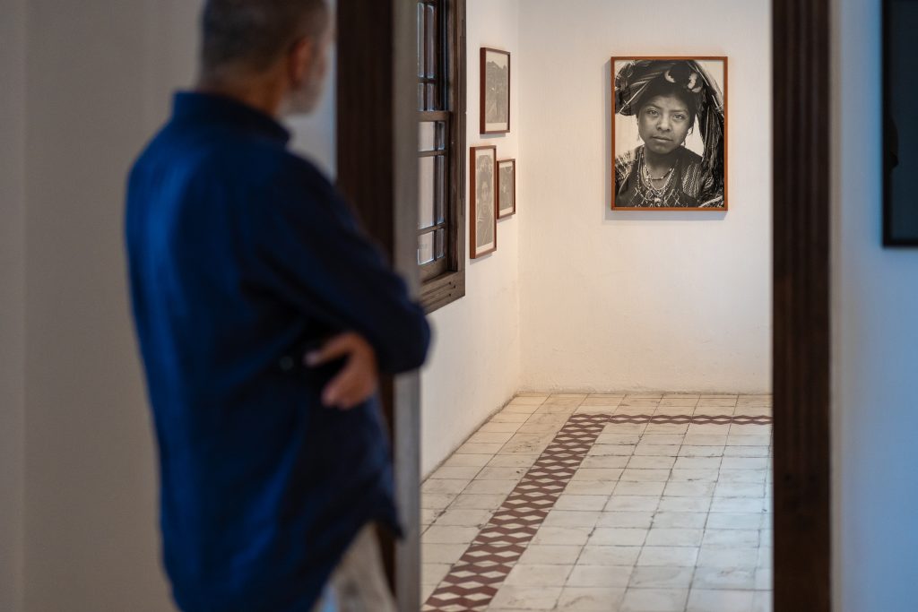 One of the final photographic works by Chauche included in the exhibition portrays a cemetery linked to events of 1982. The scene, marked by restraint and contained beauty, serves as a closing moment for a section defined by the presence of death as a structuring element of the territory. In correspondence with the duality inherent in life, his portrait of the group of Cofrades Mayordomos of Nebaj, in direct dialogue with the Map of Memory of Ilom placed before them, is particularly eloquent.