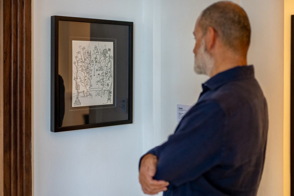 The tour begins with an untitled drawing by Alfredo Ceibal from 1980, depicting figures seated around a table deliberating over the fate of the world, a direct allusion to the geopolitical conflicts of the Cold War. With a blend of humor and irony, the piece establishes visual connections with the reality of Latin America, the cinema of Stanley Kubrick (Dr. Strangelove), and contemporary references such as A House of Dynamite by Kathryn Bigelow.