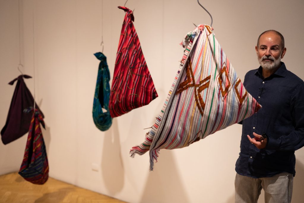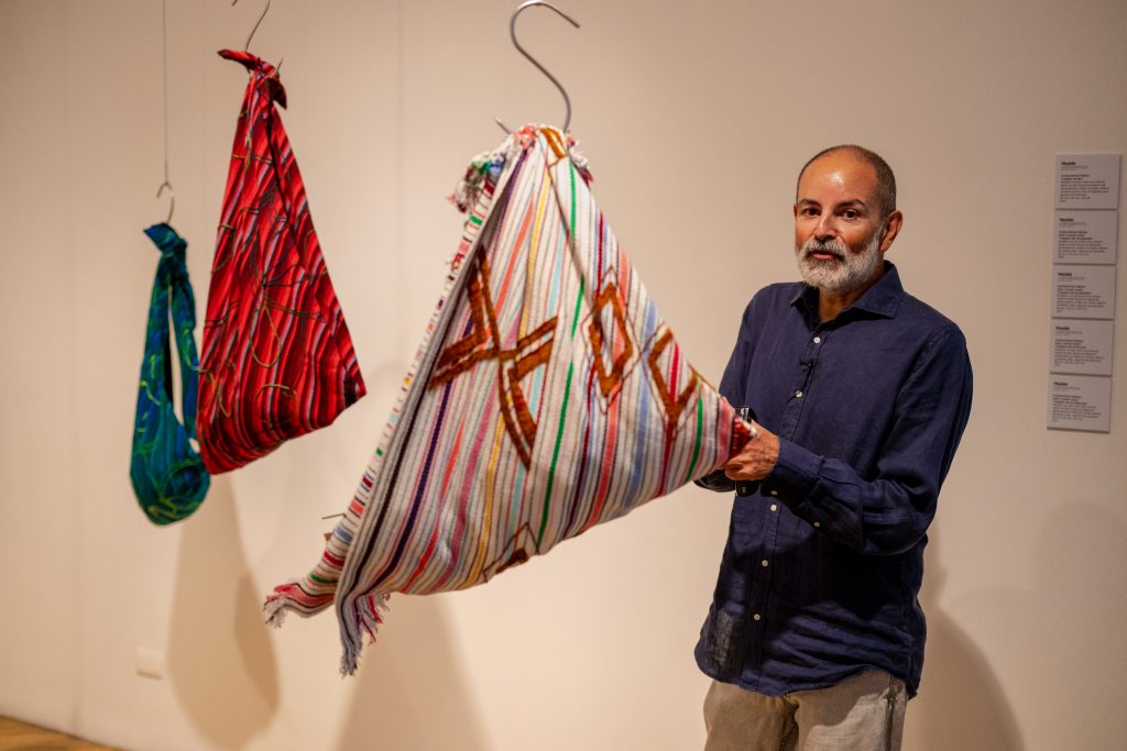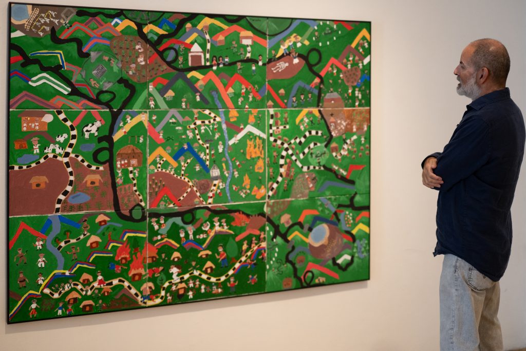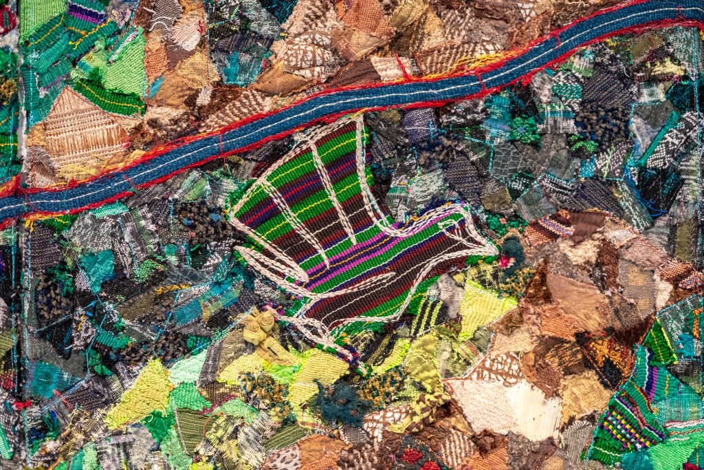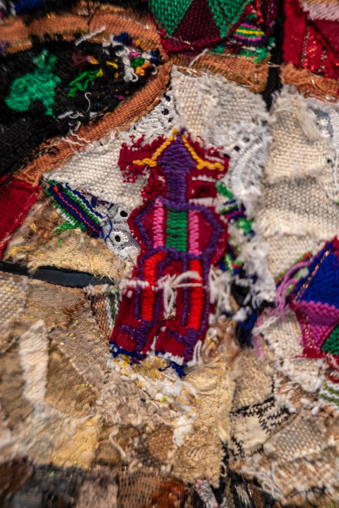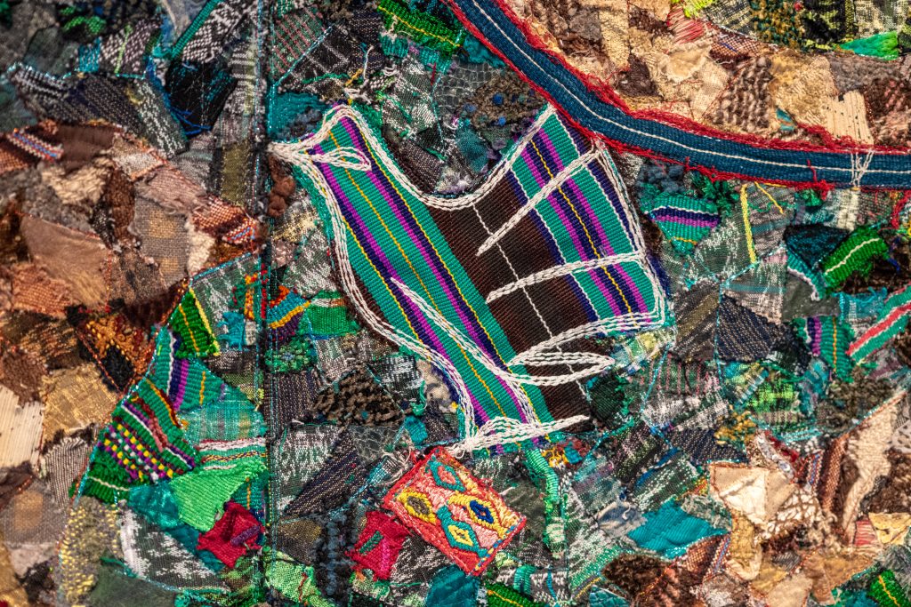 As an additional note, among Tenenbaum’s works, Q’uq’umatz. San Juan Cotzal stands out. The piece traveled to participate in an exhibition in Ukraine but was never displayed; for weeks it remained stored in a postal office and eventually returned to Guatemala, charged with energy, after months of uncertainty about its whereabouts. This piece is an integral part of the group of works by the artist on view, all of which evoke forced displacements, armed conflicts, and connections between distant geographies shaped by violence, while also affirming the strength and dignity of women weavers.